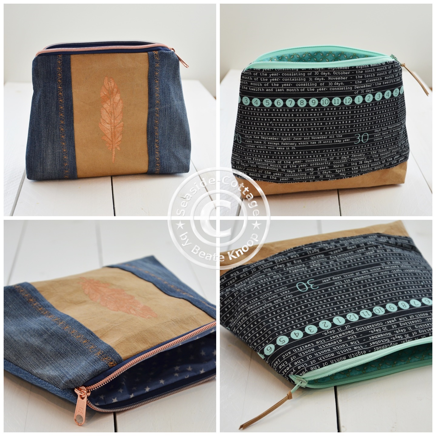 Bei diesem Täschchen-Schnitt, den ich mir selbst mal erstellt habe, kann ich immer wieder ein anderes Design erstellen, indem ich verschiedene Stoffe, Materialien oder Techniken miteinander kombiniere.