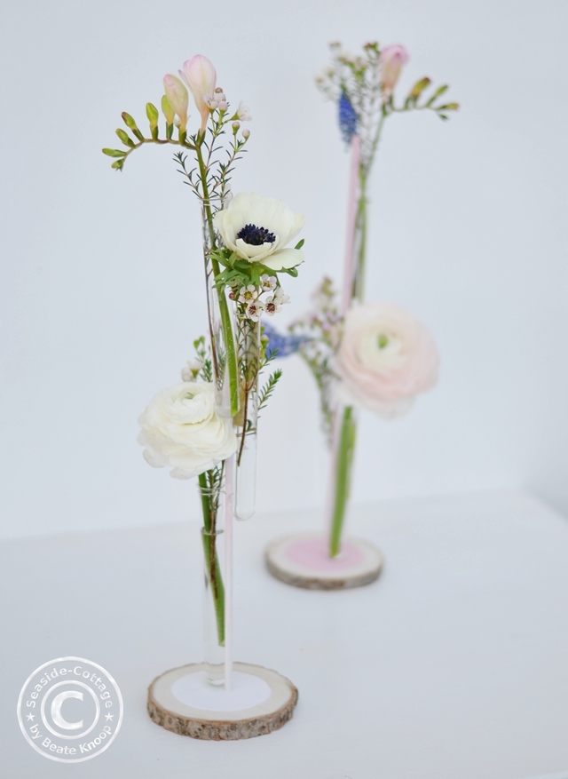 Eine weitere Gestaltungsidee mit Reagenzgläsern findest Du in meinem früheren Post „Florale Deko: DIY Reagenzglasgestell mit Frühlingsblumen“. Das Prinzip der Gestaltung ist genau das Gleiche, nur in Groß.