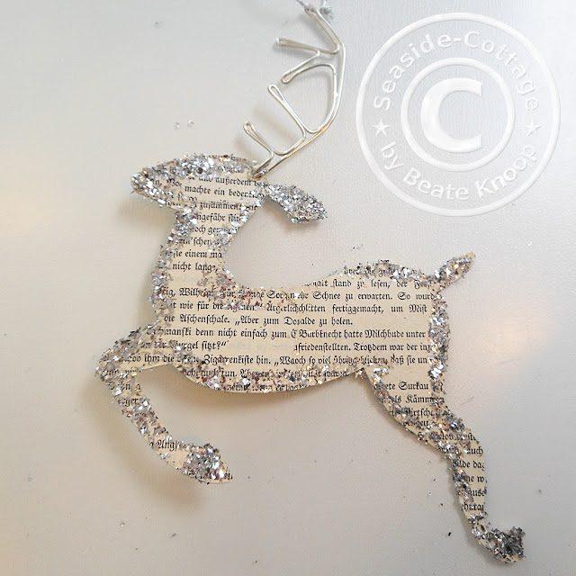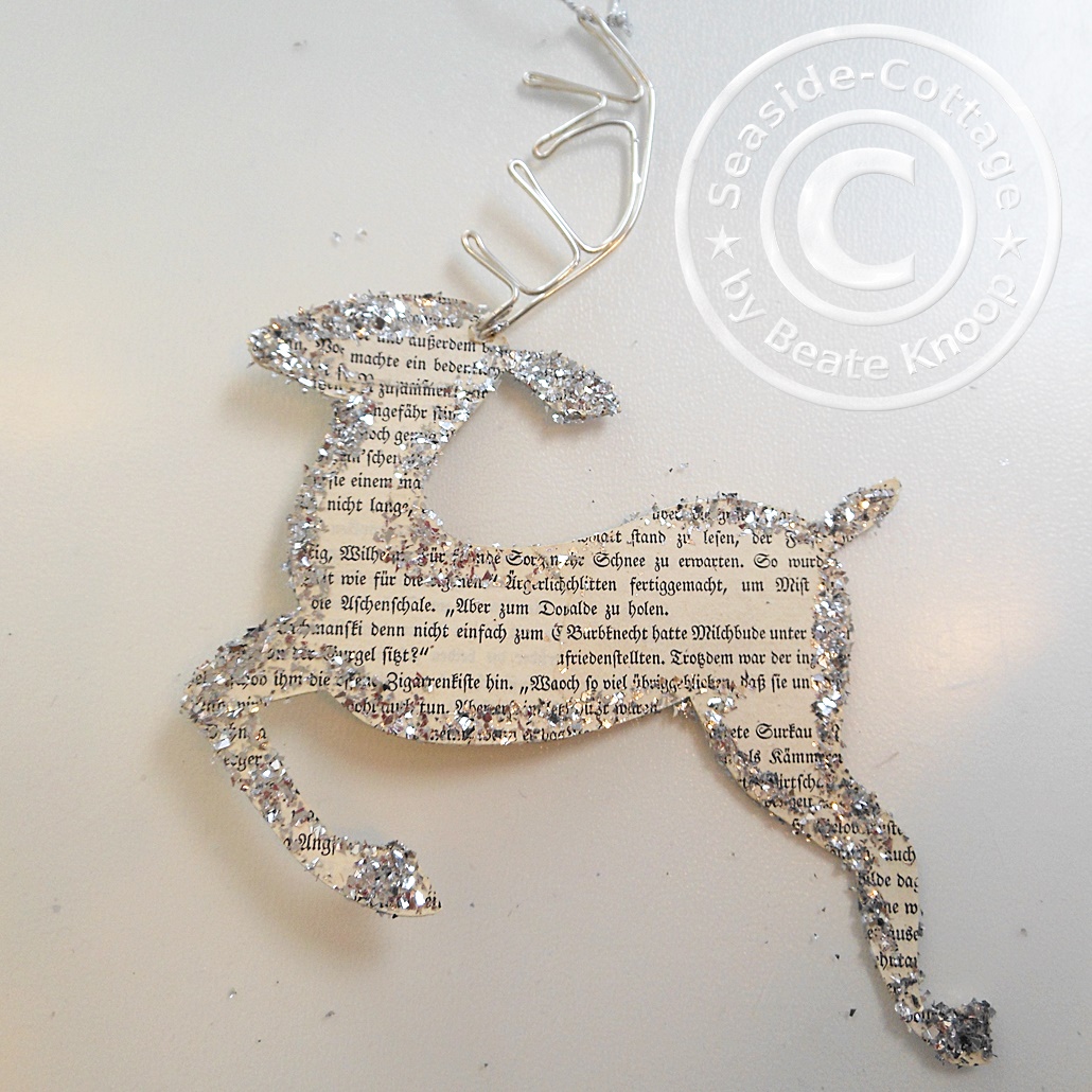 Ohhh, wie wunderschön! Sterne aus alten Buchseiten bin ich auch gerade am Ausschneiden/Anfertigen. Allerdings (bislang) ohne Glitzer. Aber deine Idee hat mich angefixt… ;-) Toll ist auch der Springbock mit dem Geweih aus Silberdraht. Eine wunderschöne, eine schlichte und sehr ansprechende Dekoidee. Danke für die Inspiration. ♥