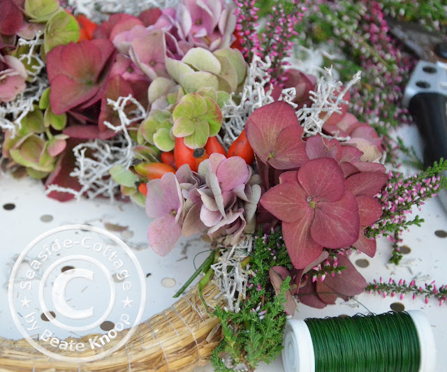 Anleitung Kränze aus Hortensien, Heide und Hagebutten