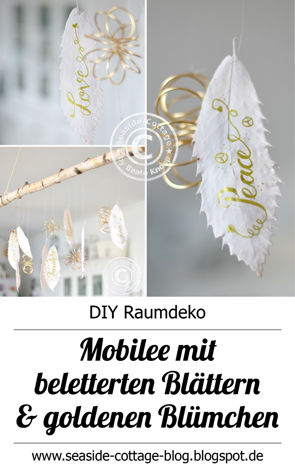 DIY | Mobilee mit beletterten Blättern und goldenen Blümchen