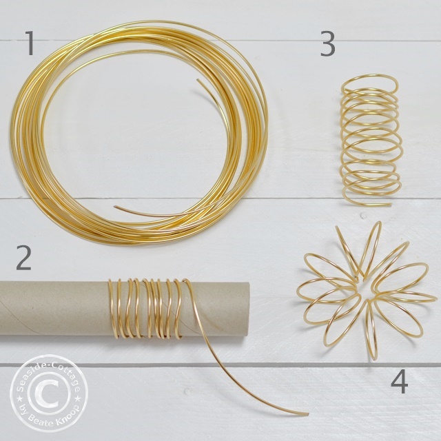 - Ihr braucht dafür dickeren goldfarbenen Aludraht (aus dem Bastel- oder Floristikbedarf)