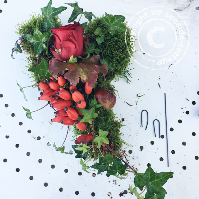 Es ist gar nicht schwer, es selbst zu machen. Fast alles, was Du brauchst, findest Du im Garten oder in der Natur. Bis auf die Rose und das Wasserröhrchen aus Kunststoff. Das bekommst Du bei Deinem Floristen.