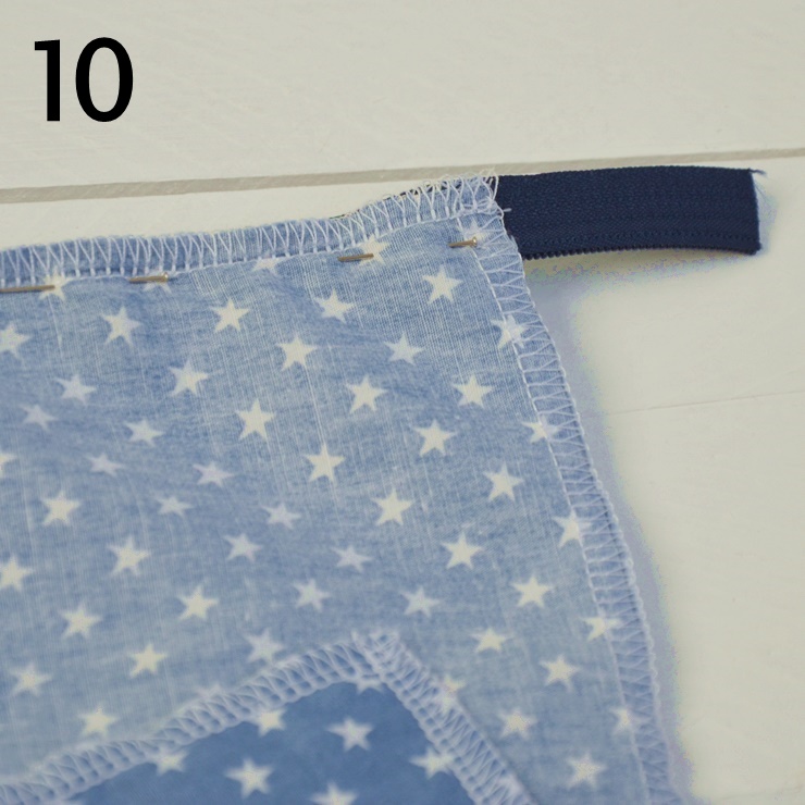 13. Der Länge nach zusammenklappen und mit zwei Wäscheklammern festklammern (so, daß Du den Außenstoff sehen kannst)