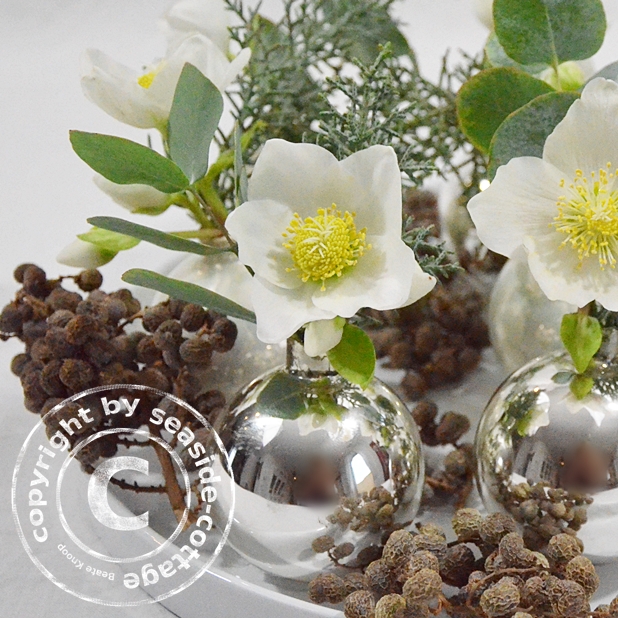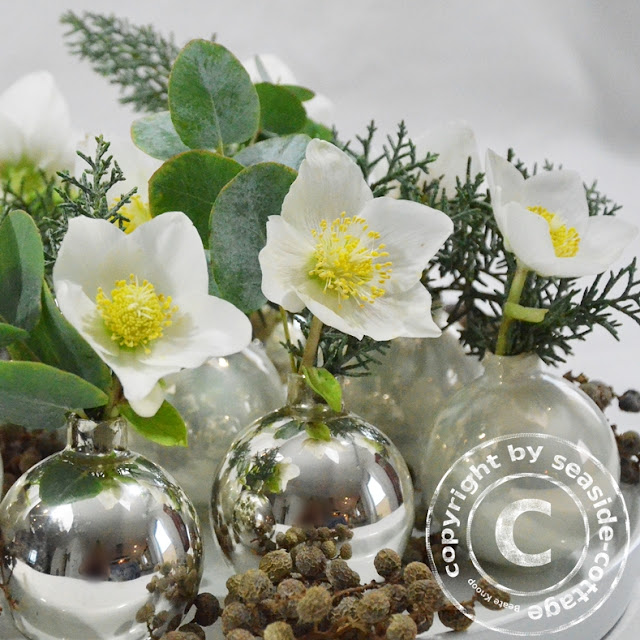 DIY: Weihnachtliche Tischdeko mit Christrosen in Christbaumkugeln