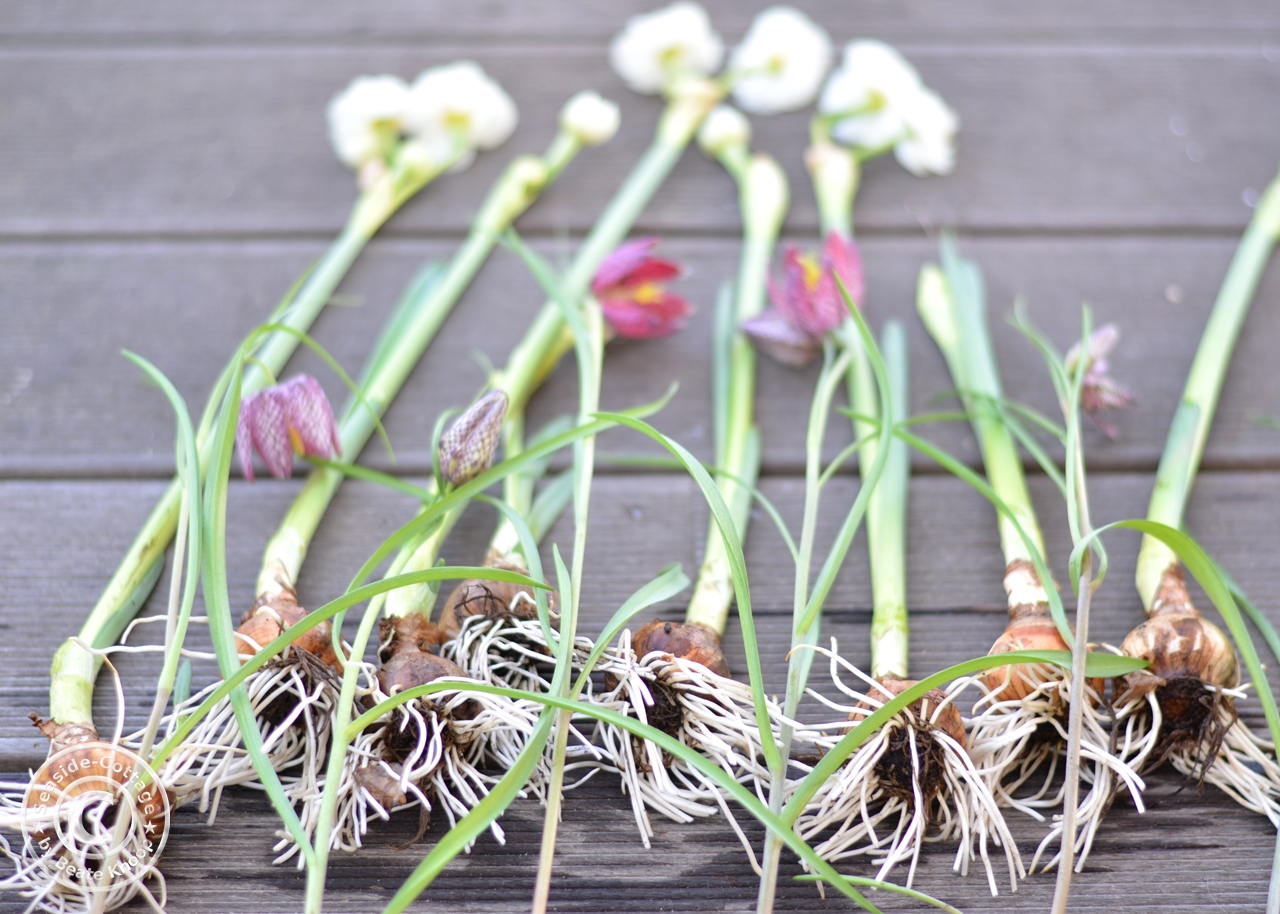 Und? Ist doch ganz einfach, oder? Das Schöne an Zwiebelblühern im Frühling ist: sie haben quasi ihren Wassertank unten an den Füßen und man kann gestaltungstechnisch so viel mit ihnen machen. Ihr könnt sie z.B. auch als Deko an einen Türkranz binden. Oder ihr hängt sie kopfüber an schönen Bändern an einen Birkenast, der über dem Esstisch schwebt. Habt ihr das schon mal ausprobiert? Erzählt mir gerne von euren Erfahrungen und Gestaltungsideen. Ich freue mich sehr über eure inspirierenden Worte.