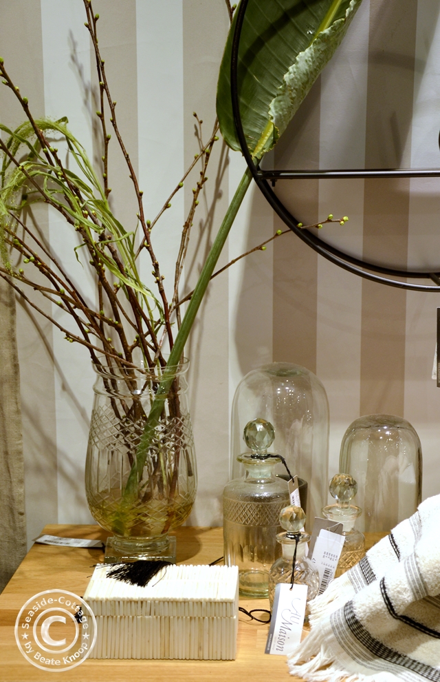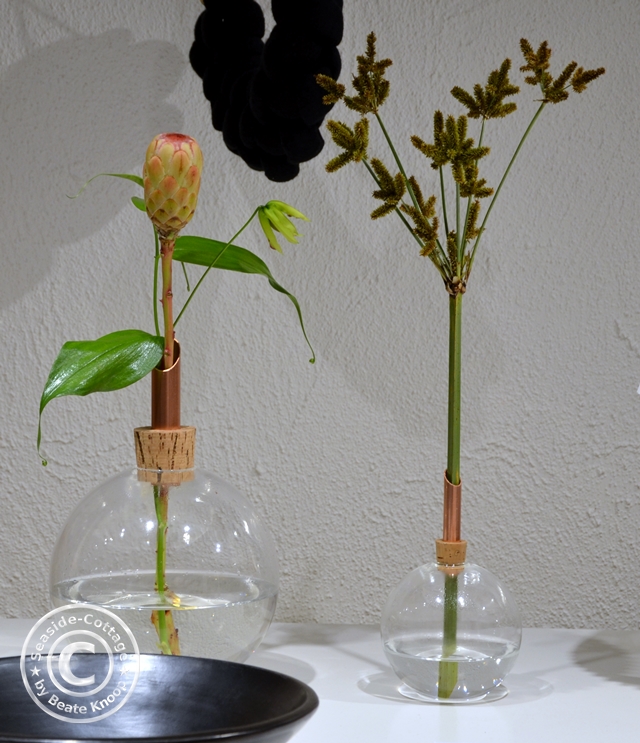 Jetzt zeige ich euch eines meiner persönlichen Highlights der Messe. Es ist so einfach und schlicht, das ich es schon wieder genial finde. Und zwar sind es diese wunderschönen Kugelvasen mit Korken und Messingrohr von Scandinaviaform. Ich hatte gleich verschiedene Dekomöglichkeiten vor meinem inneren Auge und am liebsten hätte ich mir ein Dreierset mitgenommen. Aber es ist ja eine Ordermesse und da kann man leider nichts direkt kaufen (ist vielleicht auch besser so…für meinen Geldbeutel ;))