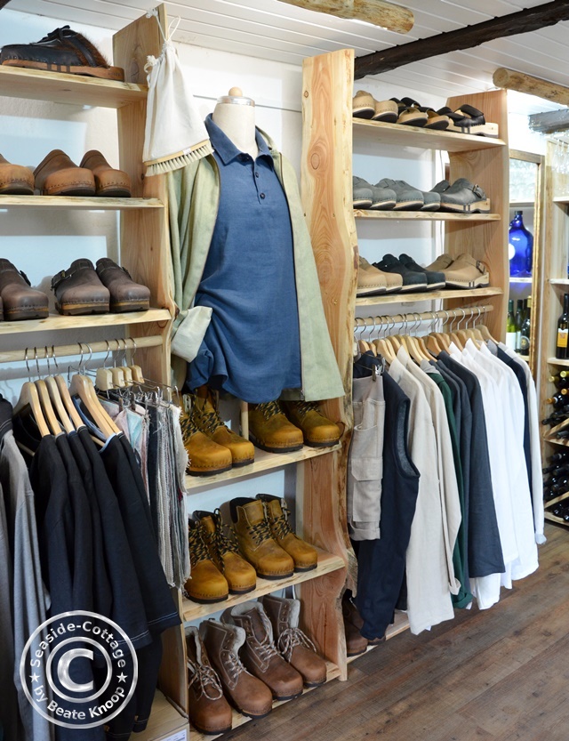 Ausserdem findet man bei Nathalie auch wunderschöne, handgefertige Schuhe des Labels „woody“. Seht ihr die Clogs dort oben? Schön, oder? Und wer jetzt denkt „Die haben ja eine Holzsohle, ist das nicht ein bisschen hart für meine zarten Füße?“ Dem sei gesagt: nee, ist nicht so. Denn im Vorfußbereich der Holzsohle ist biegsamer Naturkautschuk eingearbeitet. Das macht den Schuh bequem bei jedem Abrollen des Fußes. Die Wintermodelle sind mit Lammfell gefüttert. „Am besten trägt man die Schuhe dann ohne Socken. Das fördert die Durchblutung der Fußsohlen und sorgt für angenehm warme Füße im Winter“, erklärt Nathalie.