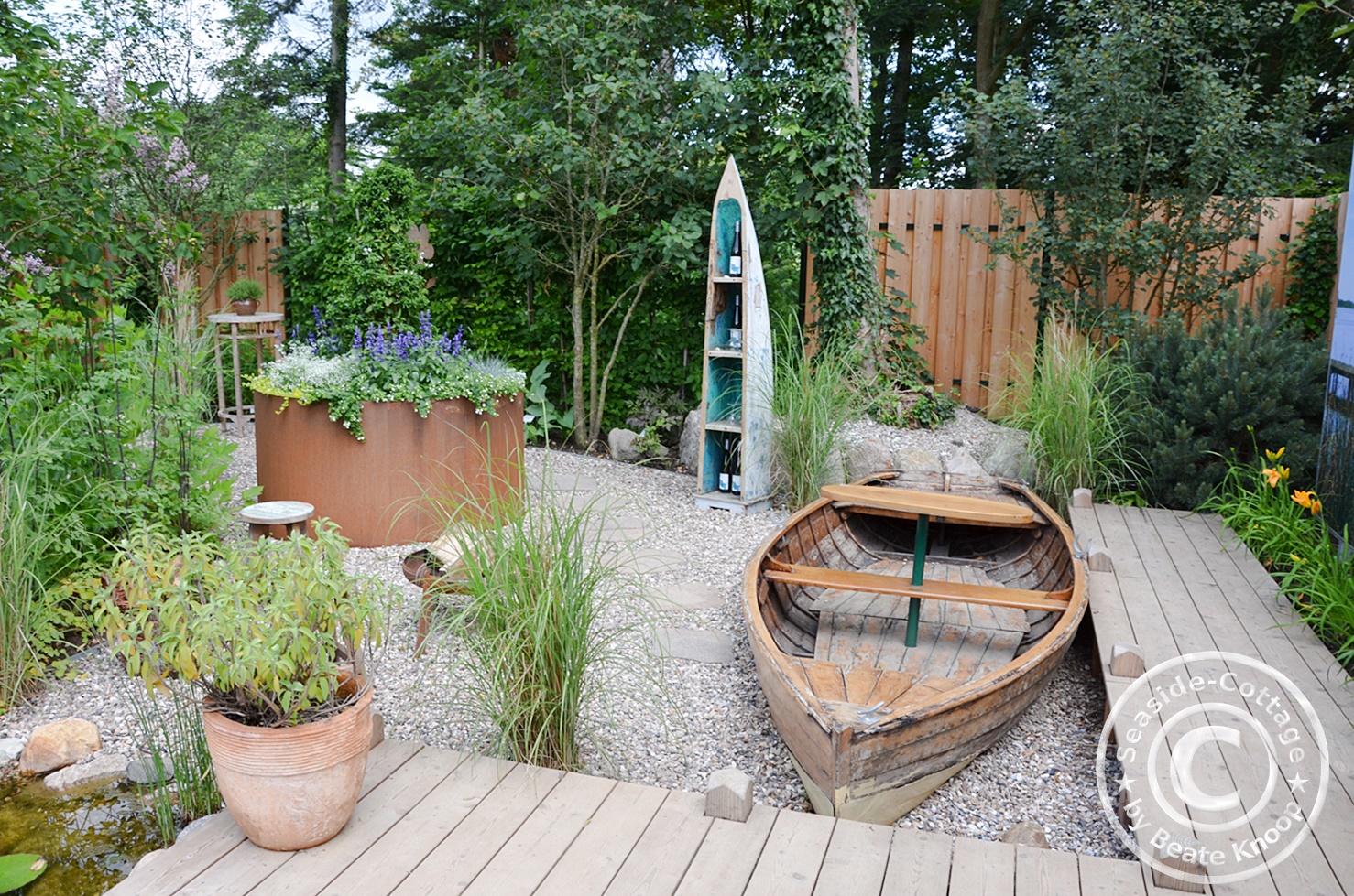 Da Eutin in der Nähe der Ostsee liegt, ist der Strand und das Meer natürlich ein passendes Thema. Wenn Du also das Meer liebst und es nicht wie ich vor der Haustür hast, kannst Du dir einen Bereich im Garten mit etwas Planung und Aufwand in eine kleine Strandoase verwandeln. Super Idee, oder?