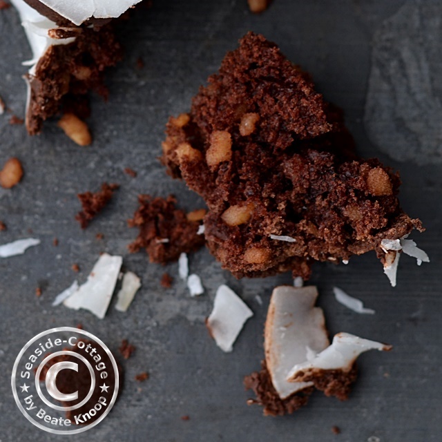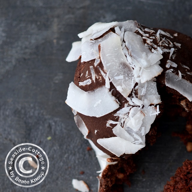 Rezept für vegane Schokomuffins mit Mandeln und Kokosstreusel