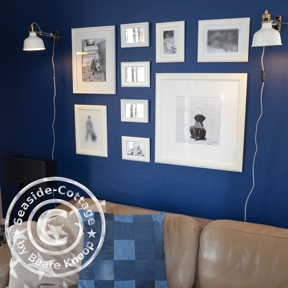 Dein Kissen passt ja wirklich perfekt zur blauen Wand. Sehr schön finde ich es, dass du die Stoffstückchen in unterschiedlichem Fadenlauf zusammengenäht hast. Ich sammle auch immer alte Jeans, irgendwann soll mal ein Quilt für den Garten daraus werden. Jeanskissen finde ich aber auch toll.
