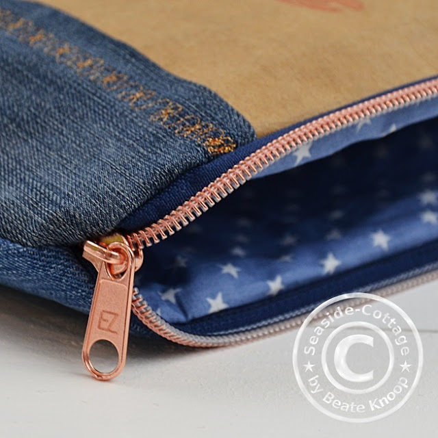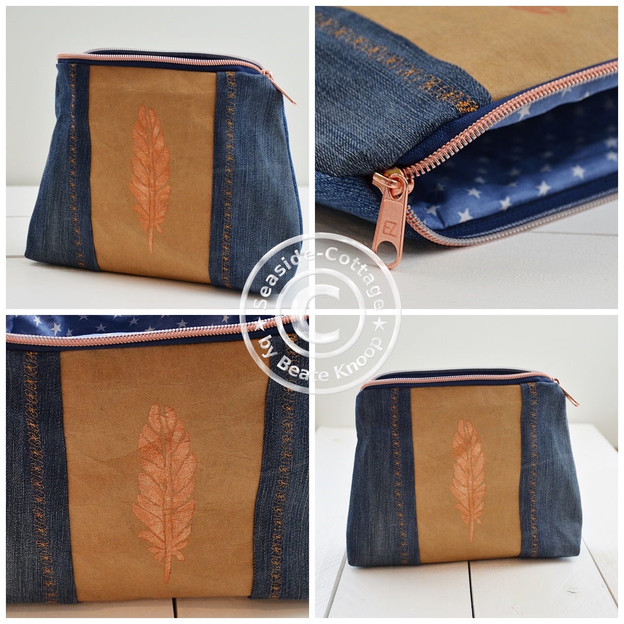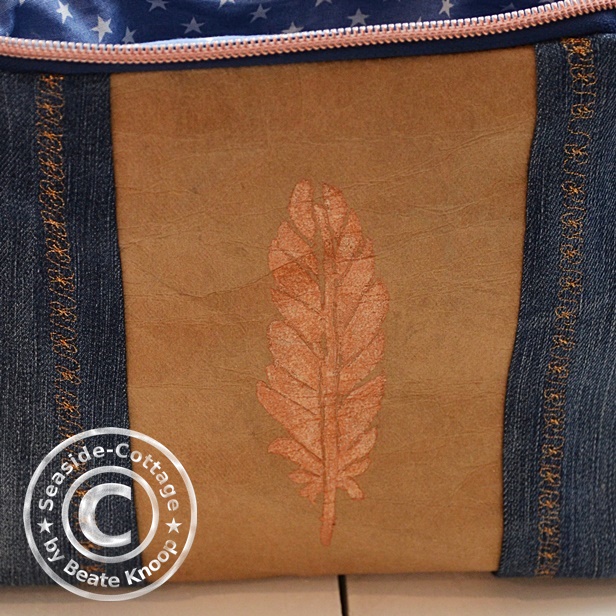 Hier habe ich euch ja schon mein erstes Snappap-Projekt vorgestellt. Und nach euren lieben Kommentaren zu urteilen, hat es euch gut gefalllen. Jetzt habe ich es noch mal für meine Beauty-Bag verwendet und wieder meine Lieblingsfeder mit Schablone und Textilfarbe aufgemalt.